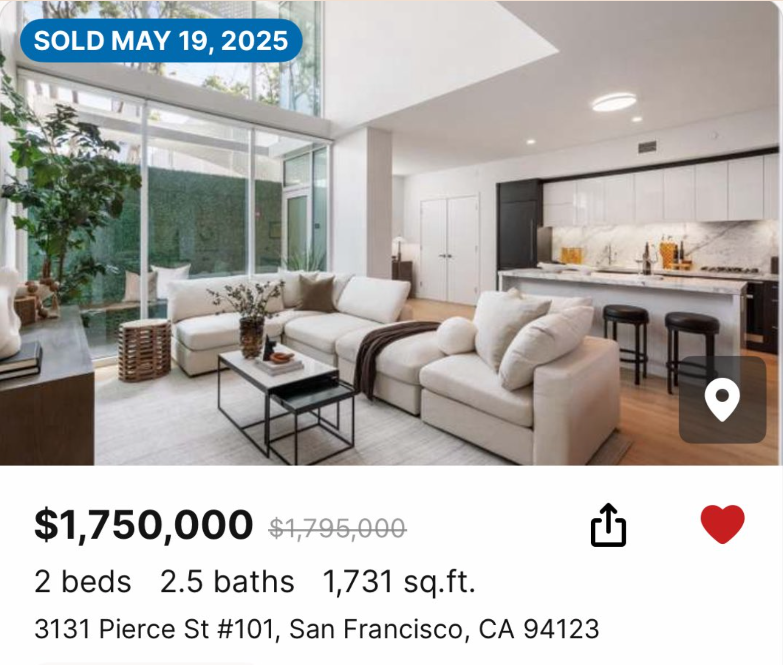 New construction two-level condo with parking. Originally listed at $2.495MM, my clients closed at $1.75MM